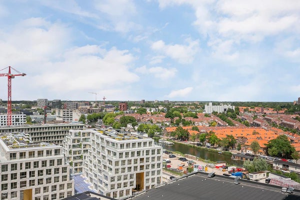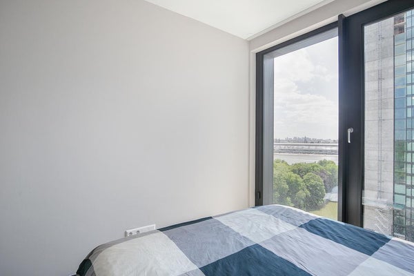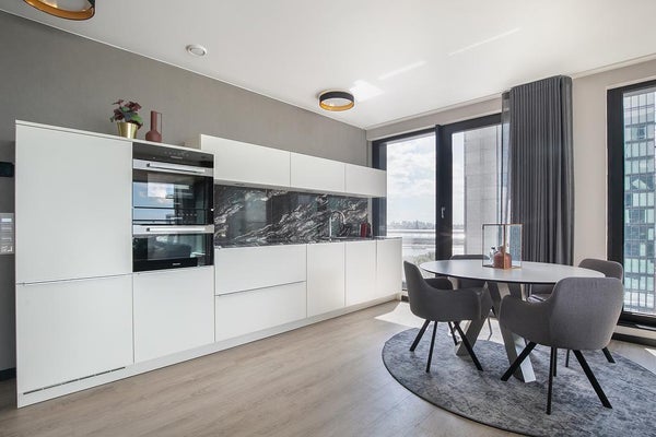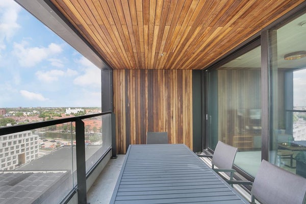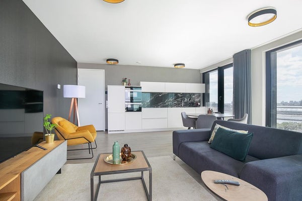 Dit volledig gemeubileerde en gestoffeerde appartement aan de Badhuiskade 179 bevindt zich op de 13e verdieping van een modern complex in de gewilde wijk Overhoeks in Amsterdam-Noord.