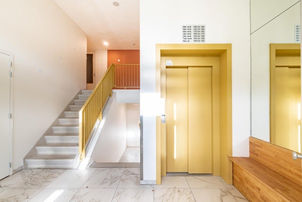 Begane grond: Centrale entree met video-intercom en toegang tot de liften en de trappenhuizen.