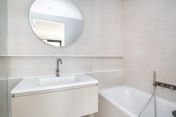 De grote master bedroom heeft een queensize bed, een grote ingebouwde kast en een smart TV. Het heeft een grote badkamer die direct verbonden is, ook voorzien van een verwarmingselement voor handdoeken, een apart ventilatiesysteem, een douche met twee moderne douchekoppen en een bad.