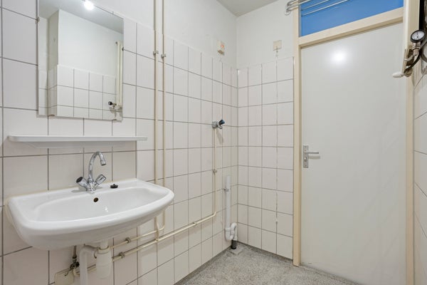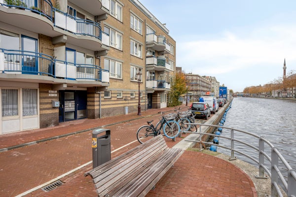 Deze woning heeft een oppervlakte van circa 70 vierkante meter en is gelegen op de eerste verdieping van het pand. De woonkamer heeft een totale oppervlakte van 21 vierkante meter en is gelegen aan de voorzijde van het pand met uitzicht op het water. Naast de woonkamer bevindt zich de gesloten eenvoudige keuken zonder (inbouw)apparatuur. Vanuit de keuken is toegang naar het balkon, gelegen op het Westen, waar je heerlijk vanaf de middag in de zon kan genieten van het uitzicht. De twee ruime slaapkamers zijn gelegen aan de achterzijde van het appartement en hebben een oppervlakte van circa 11 en 14 vierkante meter. Vanuit de hal heb je toegang naar de badkamer waar tevens de wasmachine aansluiting is geïnstalleerd. Daarnaast heeft het appartement een separaat toilet en een separate berging op de begane grond.