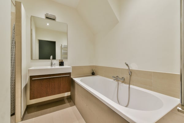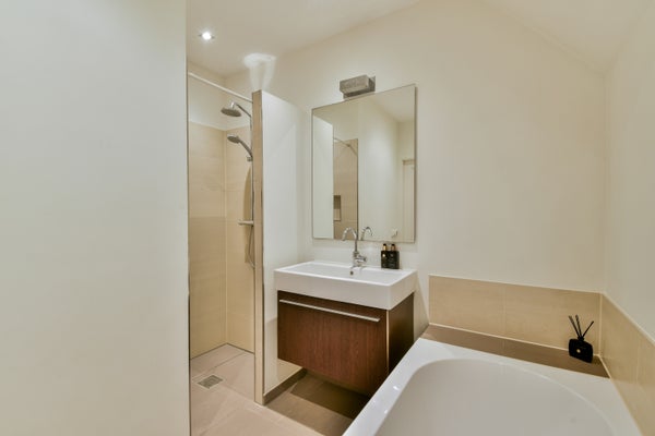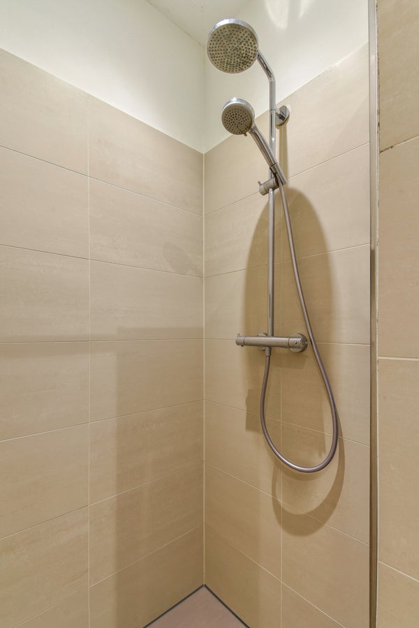 De woning telt twee slaapkamers, één aan de rustige achterzijde en één aan de voorzijde. Beide voorzien van inbouwkasten. De moderne badkamer is voorzien van een ligbad, wastafel met meubel, inloopdouche en een separaat toilet.
