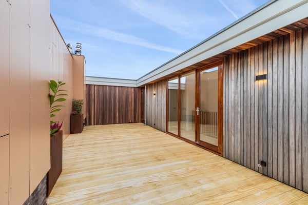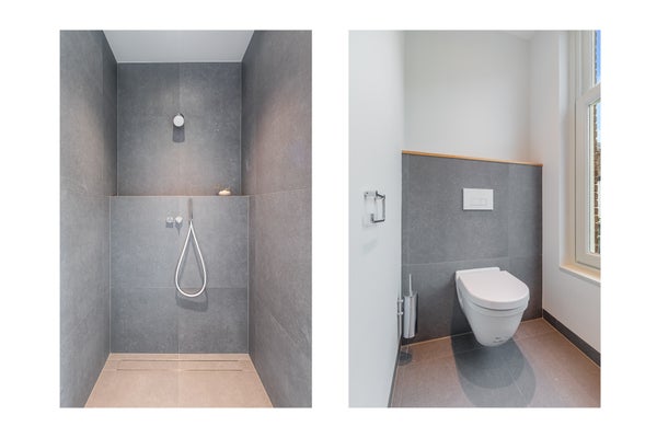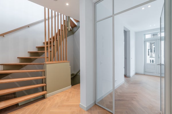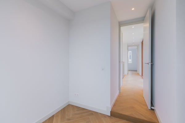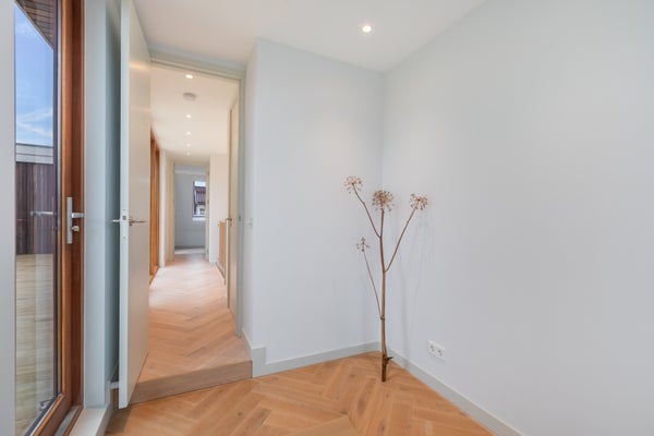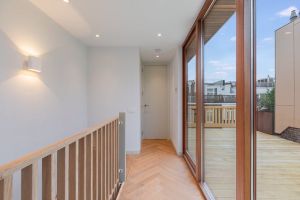 Gemeenschappelijke entree, appartementsingang op de tweede etage waar je via een eigen trap de derde verdieping bereikt. Vanuit de gang heeft u toegang tot de woonkamer, de keuken, een apart toilet en de slaapkamer met en-suite badkamer. Aan de voorzijde van het appartement bevindt zich de ruime, sfeervolle keuken met een kookeiland. Naast de keuken ligt de gezellige woonkamer, voorzien van een haard. Door de vele ramen aan de voorzijde is het appartement heerlijk licht. Aan de achterzijde vind je de master bedroom met inloopkast en eigen badkamer voorzien van een inloopdouche, wastafel en toilet. Via de trap in de gang kom je op de vierde verdieping, waar twee extra slaapkamers zijn. Op deze verdieping bevindt zich ook nog een apart toilet en de tweede badkamer met een inloopdouche en wastafel. Tot slot is er toegang tot het riante zonnige dakterras, dat veel privacy biedt.