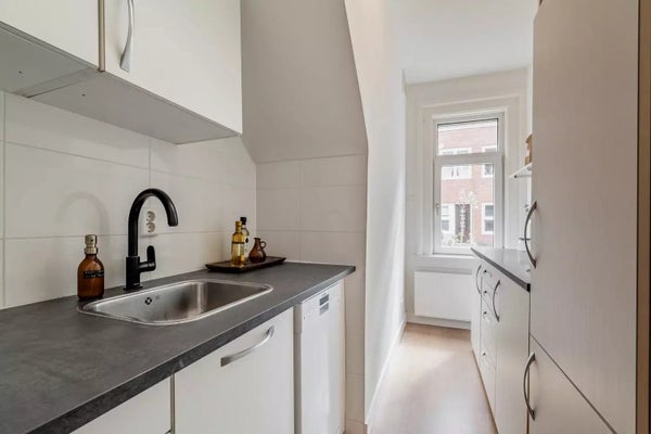 Dit mooie, ruime, volledig gerenoveerde driekamerappartement van 71m2 ligt in een zeer levendige en gewilde wijk binnen de Ring van Amsterdam en op loopafstand van het Vondelplark, het Rembrandtpark en de Grachtengordel. De woning is uitstekend bereikbaar via de Ring A-10, afslag Overtoomse Veld (S106) en met het openbaar vervoer met Tramlijnen 1, 7 en 17 en bus 15 en 18. Er is voldoende parkeergelegenheid voor de deur. In de nabije omgeving zijn alle denkbare voorzieningen, zoals: winkels, sportcentra, musea en trendy eetcafe’s en restaurants en bars. Woning: Vanuit de stijlvolle entree kom je in de hal die toegang geeft tot alle vertrekken van de woning. De gehele woning is voorzien van een nieuwe laminaatvloer en diverse ruime inbouwkasten. De moderne keuken aan de voorzijde is voorzien van diverse apparatuur zoals: vierpits gastoestel, oven, afzuigkap, vaatwasser en een koel/vriescombinatie. De ruime en lichte woonkamer met originele schouw loopt over de gehele lengte van de woning en biedt door middel van openslaande deuren toegang tot de tuin aan de achterzijde. De woonkamer beschikt nog over de originele en-suite deuren en ruime inbouwkasten. Aan de achterzijde van de woning bevindt zich de ruime slaapkamer die ook toegang geeft tot de achtertuin. De volledig vernieuwde badkamer is voorzien van toilet, design radiator, wastafel, een ruime hoekdouche en een wasmachine. De woning wordt verwarmd door middel van een cv uit 2018. Tuin: U heeft de beschikking over een kleine tuin op het noordwesten. De tuin is niet groot, maar heel rijk om zomers in te zitten en te genieten van een barbecue en een lekker glas wijn.
