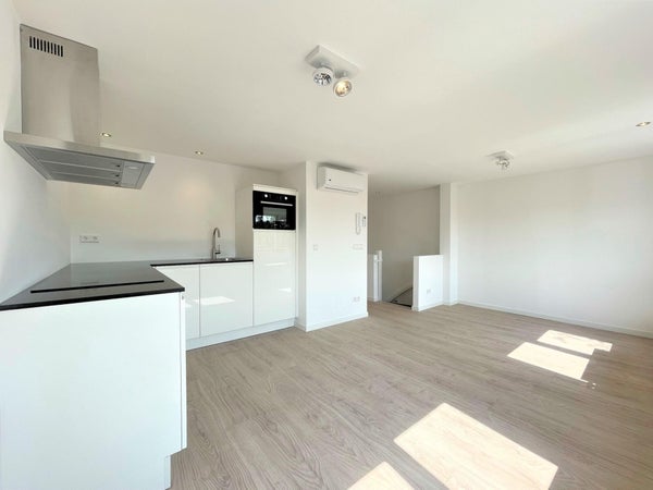 Indeling: Centrale entree. Entree van het appartement op de tweede etage met interne trap naar de derde etage. Binnenkomst in de lichte woonkamer met moderne open keuken in hoekopstelling. De gloednieuwe keuken is voorzien van een koelkast, vriezer, combimagnetron, vaatwasser en inductiekookplaat met afzuigkap. Ruime slaapkamer. Moderne badkamer met inloopdouche en dubbele wastafel met meubel. Separaat toilet met fonteintje. In een aparte kast in de hal kunt u een wasmachine en droger plaatsen. Zowel de woon als slaapkamer is voorzien van airconditioning.