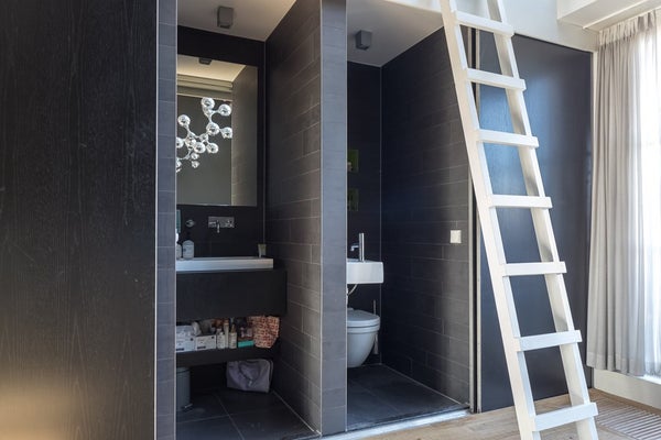Ondanks de levendige ligging, biedt dit appartement verrassend veel rust doordat het zich bevindt op de derde en vierde (bovenste) verdieping. De directe omgeving wordt gekenmerkt door historische architectuur en een creatieve sfeer.