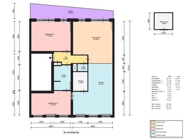 Gezamenlijke entree met trappenhuis. Hal met doorloop naar de slaapkamers, separaat toilet, badkamer met douche en bad, berging en ruime woonkamer met luxe open keuken. Externe berging aanwezig.