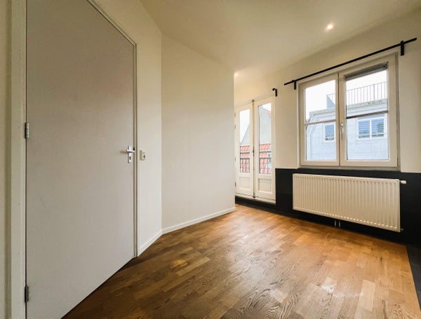 Centrale entree met trap. Voordeur van het appartement bevindt zich op de tweede etage. Via de interne trap toegang tot de 3e etage. Ruime leef keuken aan de achterzijde, voorzien van een koelkast, vriezer, oven, vaatwasser, elektrische kookplaat met afzuigkap. Vanuit de keuken is er toegang tot het balkon. De ruime woonkamer bevindt zich aan de voorzijde en via de trap in deze kamer is er toegang tot een ruim dakterras. Vanuit de woonkamer is er toegang tot de 2 kleinere slaapkamers. Via de tussen hal is er toegang tot een separaat toilet, badkamer en de ruime slaapkamer. De badkamer is voorzien van een douchecabine bad, wastafelmeubel en designradiator. Het gehele appartement is voorzien van een fraaie plavuizen en houten vloer.