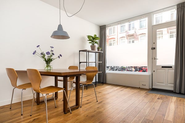 Charmant begane grond appartement met ruime zonnige tuin, gelegen in een erg gewild stukje van de gezellige Pijp in Amsterdam-Zuid. Een rustige straat met extra brede stoep, met nabij de reuring die de buurt zo aantrekkelijk maakt. Op loopafstand zijn diverse winkels, trendy restaurants, uitgaansmogelijkheden en de beroemde Albert Cuypmarkt. Om de hoek bevindt zich tevens het Sarphatipark.