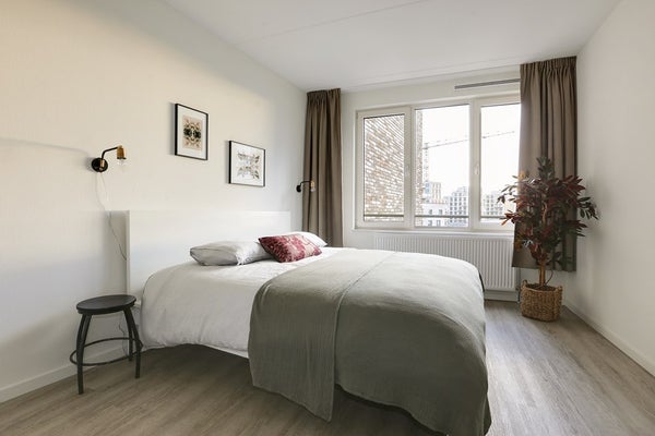 DIRECT BESCHIKBAAR VOOR ONBEPAALDE TIJD MET ÉÉN MAAND OPZEGTERMIJN - LUXE VOLLEDIG INGERICHT 110M2 TWEE SLAAPKAMER APPARTEMENT IN EEN BEVEILIGD APPARTEMENT COMPLEX IN AMSTERDAM OOST