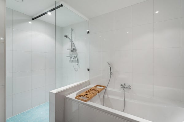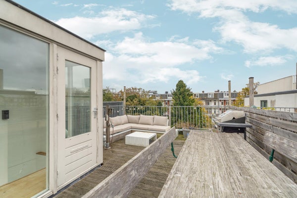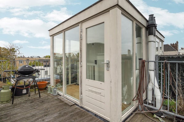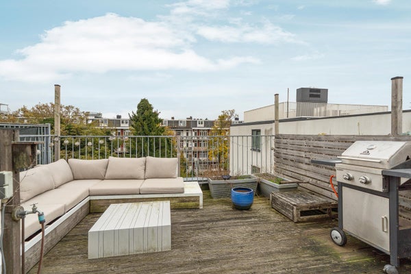 Tot slot is er een groot privé dakterras (ca. 25 m²) — een rustige plek om te ontspannen en te genieten van het vrije uitzicht over Oud-West.