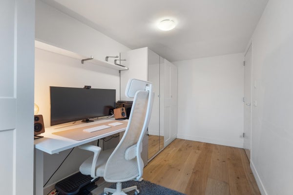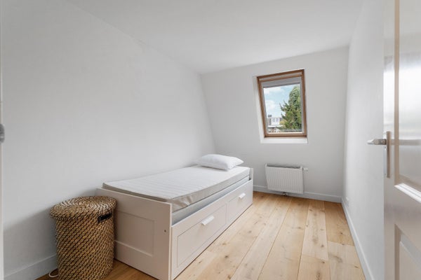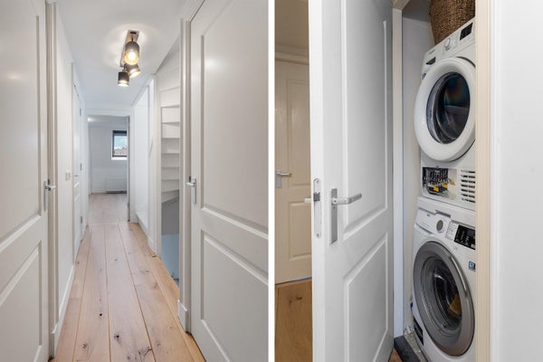 De tweede woonlaag (derde verdieping) beschikt over drie slaapkamers, waarvan twee ook uitstekend te gebruiken zijn als kantoor of hobbyruimte. De badkamer is volledig uitgerust met een ligbad, aparte inloopdouche, wastafel en toilet. Op deze verdieping bevinden zich tevens de wasmachine en droger.