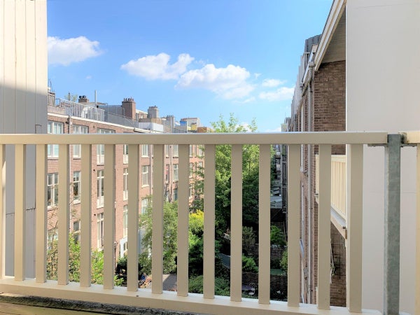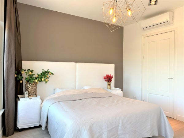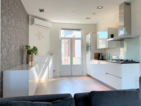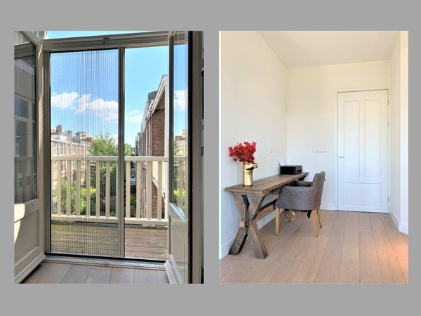 Indeling: Gezamenlijk trappenhuis met entree van het appartement op de 2e verdieping. Op deze verdieping vindt u master bedroom voorzien van een tweepersoonsbed en kledingkast en de mooie, ruime badkamer voorzien van een ligbad, royale inloopdouche, dubbele wastafel, toilet, designradiator en vloerverwarming. Interne trap naar de 3e verdieping. Lichte woonkamer met grote raampartij aan de voorzijde en open keuken aan de achterzijde. De luxe en moderne keuken is voorzien van een koelkast met vriesvak, combimagnetron, vaatwasser en gaskookplaat met afzuigkap. Dubbele deuren naar het balkon. Op deze verdieping vindt u ook een 2e slaapkamer voorzien van veel kastruimte. Het gehele appartement is zeer luxe afgewerkt, met een mooie houten vloer en zelfs airconditioning in de woonkamer en master bedroom!
