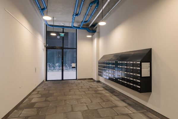 You can enjoy the outdoors on your own balcony or in the shared rooftop garden with breathtaking views over Amsterdam. The walls are ready to be painted, and the flooring can be taken over from the current tenant by mutual agreement. We are happy to put you in touch with them.