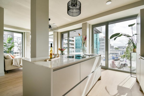 Ontdek Grasweg 111, een nieuw hoekappartement van circa 88 m² in Amsterdam-Noord, prachtig gelegen direct aan het IJ. Dit moderne appartement, gebouwd in 2025, beschikt over twee ruime slaapkamers en een zonnig balkon op het zuidoosten. De woonkamer met open keuken is een eyecatcher met bijna 3 meter hoge plafonds en vloer-tot-plafondramen die veel licht binnenlaten. De open keuken is van Piet Boon en voorzien van hoogwaardige inbouwapparatuur. De elegante badkamer komt met een inloopdouche en een vrijstaand bad. Daarnaast is er vloerverwarming en -koeling, een aparte berging, en een mogelijkheid tot het huren van een parkeerplaats in de garage. De lokale omgeving biedt een dynamische levensstijl vol contrasten, met uitstekende bereikbaarheid naar de binnenstad van Amsterdam.