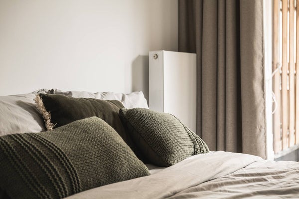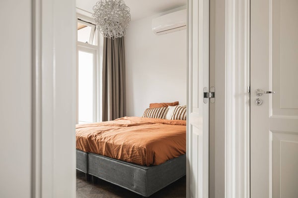 Twee ruime slaapkamers aan de achterzijde van het appartement, beide met een tweepersoonsbed en kledingkast. De hoofdslaapkamer is voorzien van airconditioning. Erg prettig met de steeds warmer wordende zomers. De AC heeft voldoende capaciteit om het hele appartement te koelen.