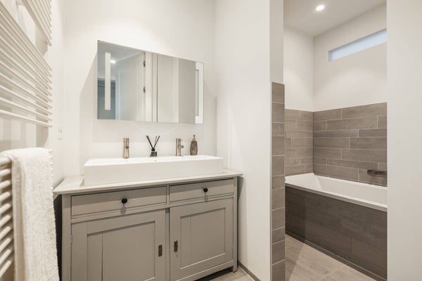 Luxe sanitair (o.a. Duravit met aparte douche/bad en toilet, vloerverwarming en verwarmde spiegel)