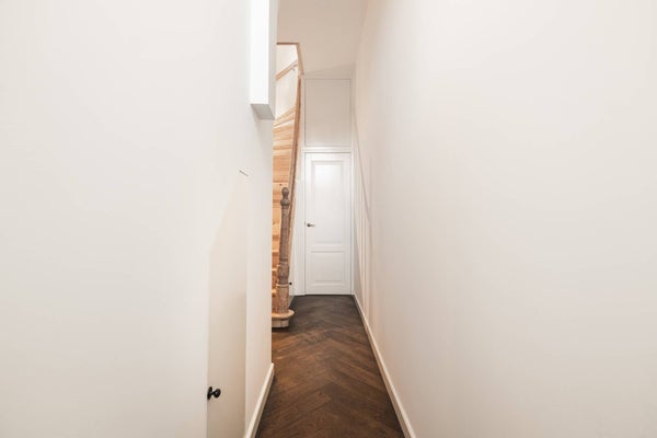 Trap naar de eerste verdieping, entree in de hal. Zeer lichte woonkamer aan de voorzijde met prachtig uitzicht over de Kostverlorengracht.
