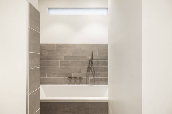 Een prachtige badkamer met luxe sanitair (Duravit) met ligbad, inloopdouche, vloerverwarming en verwarmde spiegel. Aparte wc.
