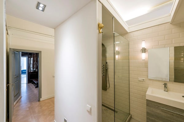 Het appartement ligt in het achterhuis en is via een monumentale entree te bereiken.