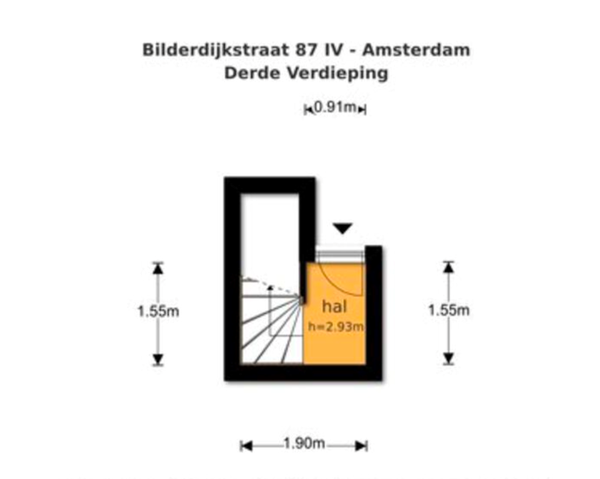 Derde verdieping: Entreehal met garderobe en trap naar de hoofdwoonniveau.