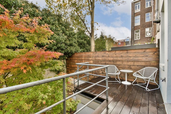 Aan de Nieuwe Prinsengracht bieden wij dit dubbele benedenhuis met 3 slaapkamers en een achtertuin gelegen op het Zuid-Oosten .