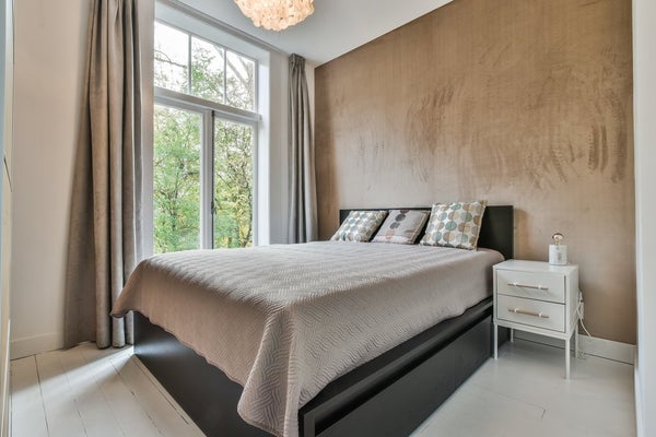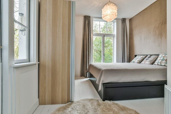 Er zijn twee slaapkamers. De master-bedroom bevindt zich aan de achterzijde en ligt heerlijk rustig aan het Vondelpark. Deze slaapkamer beschikt over openslaande deuren en een (frans) balkon.