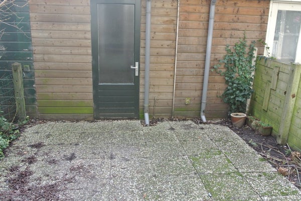 Tussen de slaapkamers in is de keuken gerealiseerd. Vanuit de slaapkamers alsmede de keuken is er toegang tot de tuin met schuur.