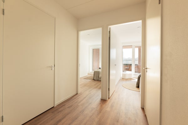 Deze elegante en stijlvolle appartementen verwelkomen je met een entree op de begane grond, waar ook het woongedeelte en de open keuken is gesitueerd. Dankzij het extra hoge plafond ervaar je een gevoel van vrijheid en ruimtelijkheid, wat bijdraagt aan een luxueuze woonbeleving. Op de begane grond bevindt zich ook een apart toilet, ruime berging en de buitenruimte. De speelse tussenverdieping in de vorm van een vide biedt uitzicht op het woongedeelte en nodigt uit tot veelzijdig gebruik. Denk hierbij aan een inspirerend thuiskantoor of een ontspannen loungehoek. Op de bovenste verdieping bevinden zich twee royale slaapkamers, stijlvolle badkamer, separaat toilet, berging en wasruimte.