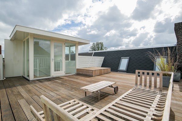 • Uitzonderlijk dakterras (45 m2) met opslagruimte