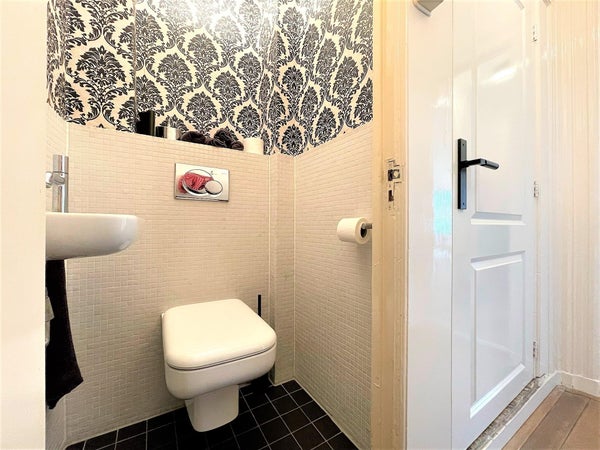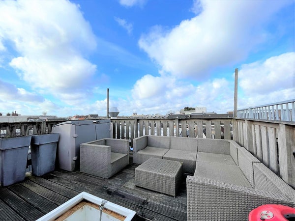 Indeling: Centrale entree met trap naar de derde etage. Hal met toegang tot een separaat toilet en een ruimte met wasmachine en droger. Zeer lichte woonkamer aan de voorzijde en een open keuken aan de achterzijde. De keuken is voorzien van een koelkast, vriezer, oven, magnetron, vaatwasser en een gaskookplaat met afzuigkap. Vanuit de woonkamer trap naar boven waar een grote ruimte te vinden is wat prima kan dienen als werkkamer. De slaapkamer is gelegen aan de achterzijde en is voorzien van een tweepersoonsbed en kledingkast. Tevens vanuit de slaapkamer toegang tot de badkamer die is voorzien van een ligbad, een aparte douchecabine, een tweede toilet en een wastafel. Vanaf deze verdieping trap om hoog naar het heerlijke dakterras waar de gehele dag kunt genieten van de zon.