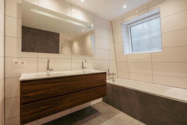 Centraal gelegen op deze verdieping vindt u de moderne badkamer, uitgerust met een dubbele wastafel met meubel, een comfortabel ligbad en een ruime inloopdouche.