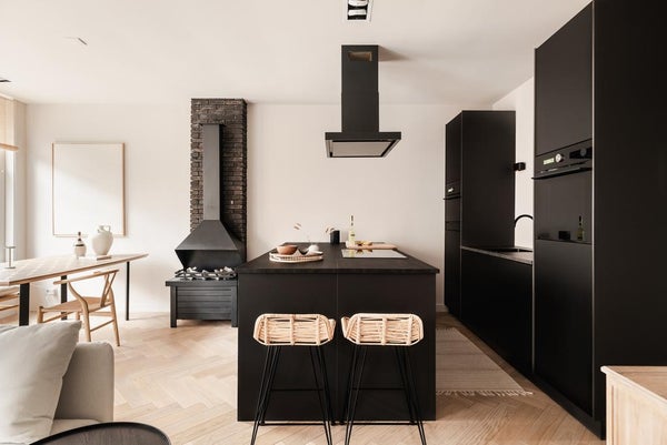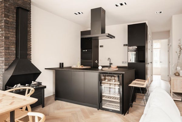 De keuken met kookeiland is uitgerust met een ingebouwde vaatwasser, combi-magnetron, stoomoven, koelkast, vriezer, AEG inductiekookplaat, Novy afzuigkap en wijnklimaatkast.
