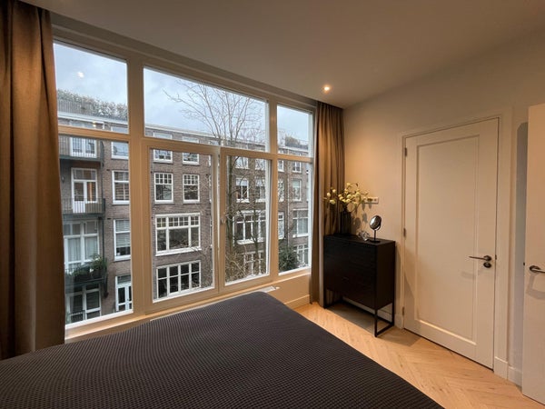 Te huur een volledig gerenoveerd luxe 3-kamerappartement van ca. 65 m². Hoge plafonds en veel lichtinval. Het appartement is gerenoveerd met hoogwaardige materialen, waaronder nieuwe deuren en ramen met dubbel glas, visgraatvloeren, dimbare inbouwverlichting, luxe complete keuken, wasruimte en 2 luxe badkamers met wastafel en inloopdouche. Bovendien is het plafond en de vloer geluidsisolerend uitgevoerd.