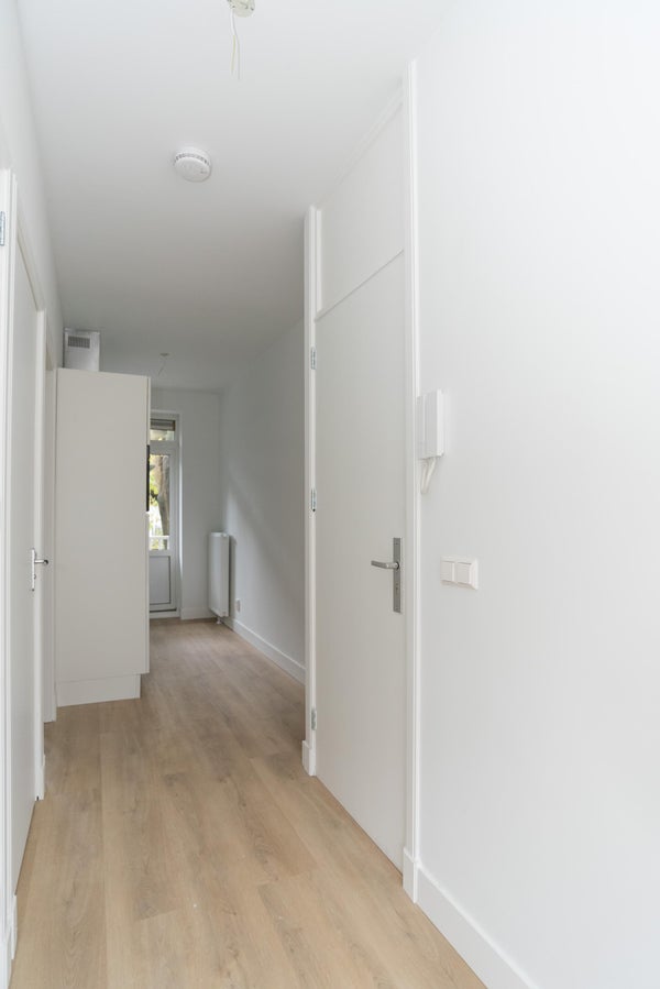 Via het gemeenschappelijke trappenhuis bereikt u de woning op de eerste verdieping. Bij binnenkomst valt direct de fijne lichtinval en nette afwerking op. De woonkamer met moderne keuken is een comfortabele leefruimte waar u heerlijk kunt ontspannen of gasten kunt ontvangen. De keuken is uitgerust met de nodige inbouwapparatuur en biedt voldoende werkruimte. De woning beschikt over twee slaapkamers, ideaal voor bijvoorbeeld een thuiswerkplek of logeerkamer. De badkamer is modern ingericht en voorzien van douche en wastafel. Daarnaast beschikt de woning over een apart toilet, wat zorgt voor extra comfort. Vanuit de slaapkamers en keuken heeft u toegang tot het balkon op het noorden, waar u op warme dagen heerlijk koel kunt zitten.