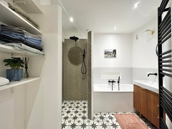 - Tegelvloeren en wanden in een eigentijdse afwerking