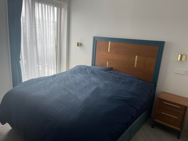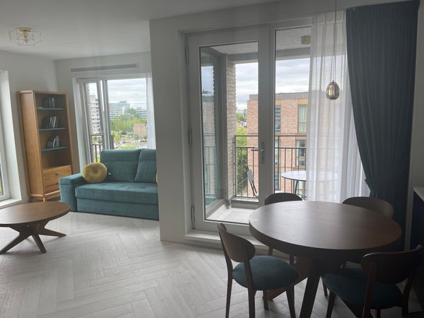 Op loopafstand hebben we tram- en bushaltes, Amsterdam, Osdorpplein Oost. 5 min met de tram en je bereikt het station Amsterdam Lelylaan met verbindingen naar metrolijnen 50, 51 en 52. Met metrolijn en tram 17 zijn de meeste delen van de stad zeer gemakkelijk te bereiken. De straat Osdorpplein is omringd door water aan alle kanten en ligt vlakbij 4 parken (Stadspark Osdorp, Rembrandtpark, Sloterpark en Botterkerkpark) en de Sloterplas. Direct aan de overkant geniet je van de prachtige wandeling langs het meer - Sloterplas. Je hoeft niet ver te gaan om een rustige en kalme plek te vinden! Aan de andere kant, genieten van de winkelgelegenheid achter het gebouw. Er zijn 4 supermarkten op 2 minuten lopen van het gebouw: AH, Dirk, Jumbo en Lidl. Meer gemak kun je niet vragen. Indeling: Lift naar de verdieping. Entree appartement; hal met toegang tot alle kamers. Het appartement is ingericht met een bos-thema. Ruime woonkamer met open keuken. De prachtige glanzende crème keuken is uitgerust met inbouwapparatuur zoals een combi-oven, inductiekookplaat, A+++ vaatwasser, afzuigkap en Quooker heetwaterkraan. Mooie en lichte kamer met grote ramen. Vanuit de woonkamer heb je toegang tot het balkon. Het balkon heeft een tafel en stoelenset om te genieten van ochtendthee of middagwijn in de frisse lucht. Woonkamer heeft een slaapbank voor een gezellige zit tijdens het tv-kijken en kan indien nodig een gast accommoderen. 1 goed bemeten slaapkamer is voorzien van een houten en rood bed met hoofdsteun voor een goede nachtrust en een ruime kast. Moderne badkamer met wastafelmeubel, dubbele wastafel, grote spiegel en inloopdouche met thermostaatkraan en betegelde wand. Technische ruimte met de wasmachine en droger combo. Het hele appartement is uitgerust met de beste kwaliteit verlichting en chique stalen lampen. Mooie PVC-vloer met vloerverwarming door het hele appartement. Hoogtepunten:
