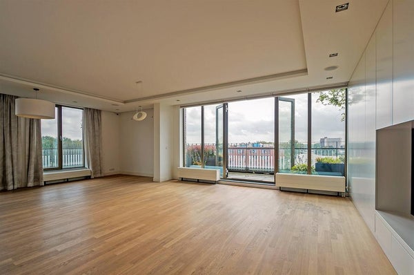 MODERNE PENTHOUSE VAN CA. 140 M2 MET PARKEERPLAATS EN RONDOM TERRAS MET UITZICHT OP DE WESTLANDGRACHT.