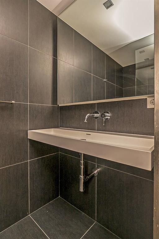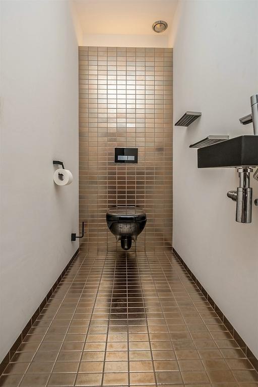 Toegankelijk via de hal is het aparte toilet, de garderobe, de berging met wasmachine en droger.