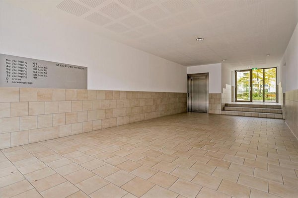 Gemeenschappelijke ingang met lift naar de 5e verdieping van het appartementengebouw.