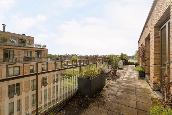 Dakterras (70m2) toegankelijk vanuit de woonkamer, master slaapkamer en 2e slaapkamer met een geweldig uitzicht over de Westlandgracht.