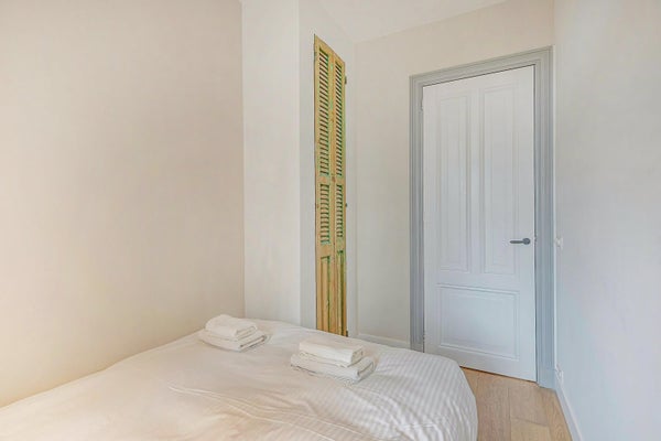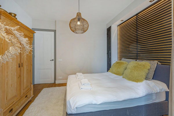 Het appartement heeft een moderne badkamer met een bad, douche, toilet en wastafel. Beide slaapkamers bevinden zich aan de achterzijde van het appartement en bieden rustige, privéplekken met tweepersoonsbedden, voldoende bergruimte en directe toegang tot het achterbalkon — ideaal om te genieten van uw ochtendkoffie of avondbries.