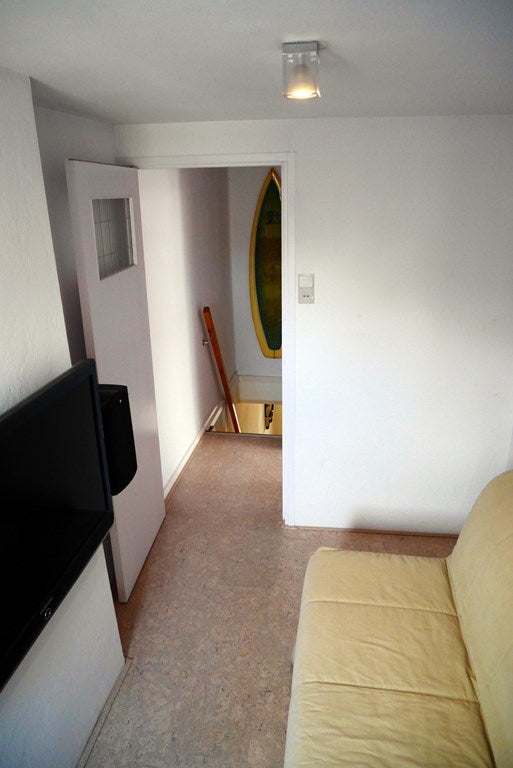 Vanuit de woonkamer leidt een trap naar de bovenverdieping waar de twee slaapkamers zijn gelegen. De master bedroom heeft inbouwkasten en directe toegang tot het geweldige dakterras.