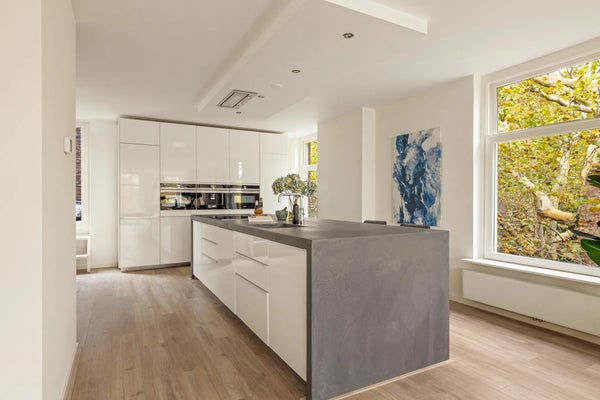 Gelegen op de bovenste verdiepingen en zonder bovenburen biedt deze woning een uitzonderlijk gevoel van rust en privacy midden in de stad. Licht valt van alle kanten binnen, met uitzicht op de gracht aan de voorzijde en het park aan de zijkant. De open keuken, voorzien van hoogwaardige inbouwapparatuur en veel bergruimte, combineert design met praktisch gebruiksgemak. De klassieke Amsterdamse gevel geeft het pand karakter, terwijl de ligging aan het Van Oldenbarneveltplein zorgt voor relatief goede parkeermogelijkheden in de buurt, ook voor elektrische voertuigen.