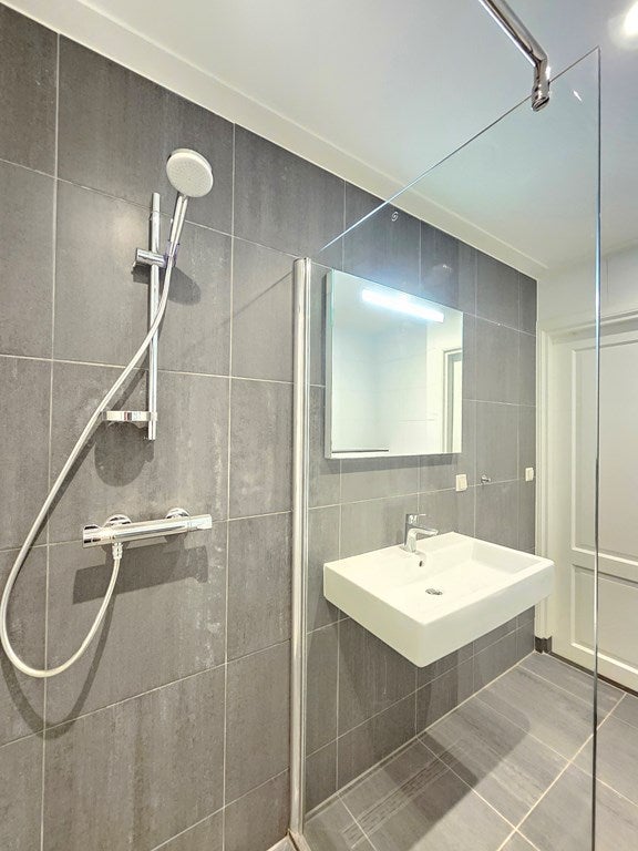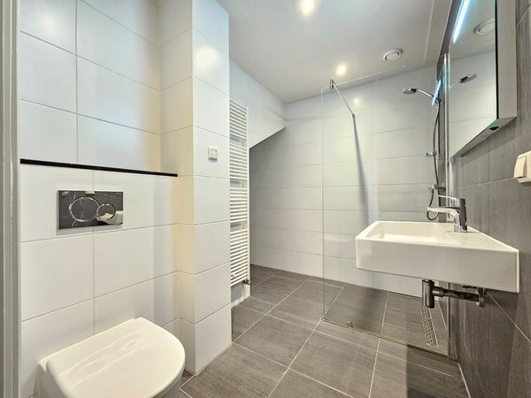 Er is een slaapkamer met toegang tot het balkon op het zuiden en de andere slaapkamer dat op het noorden liggen. De badkamer heeft een wastafel, toilet en inloop regendouche.