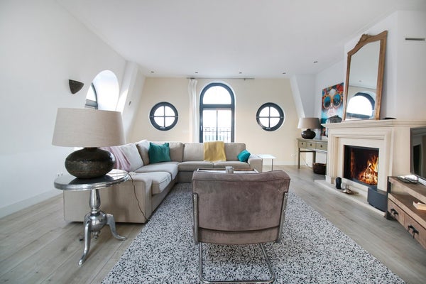 Het appartement is gelegen op de bovenste twee verdiepingen van een prachtig pand uit eind 19e eeuw. De lift brengt u direct in het appartement!
