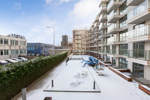 De beide slaapkamers zijn met respectievelijk ruim 15- en 16 m2 riant te noemen! Eenmaal in de woonkamer valt gelijk het licht en de ruimte op. Daarnaast is er zicht op de moderne, strakke keuken die voorzien is van een composiet aanrechtblad, inductiekookplaat, recirculatie afzuigkap, afwasmachine, combi oven/magnetron, koel/vriescombinatie en spoelbak. Natuurlijk is er vanuit de ruime woonkamer ook toegang tot het heerlijke balkon zodat er fijn van het buiten genoten kan worden. Het appartement heeft een gekoppelde parkeerplaats, deze is verplicht ter afname en bevindt zich in de onderliggende parkeergarage.