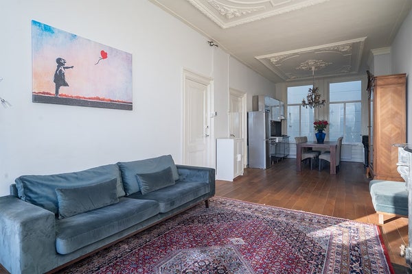 Dit karaktervolle appartement is gelegen op de eerste verdieping van een monumentaal pand uit 1894 en kenmerkt zich door hoge plafonds van ca. 3,10 meter met authentieke ornamenten. De woning beschikt over een balkon aan de voorzijde en grote raampartijen die zorgen voor veel lichtinval. Zowel de voor- als achtergevel zijn voorzien van dubbele beglazing.