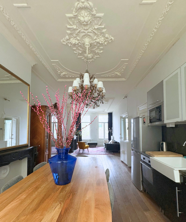 - Hoge plafonds met originele ornamenten