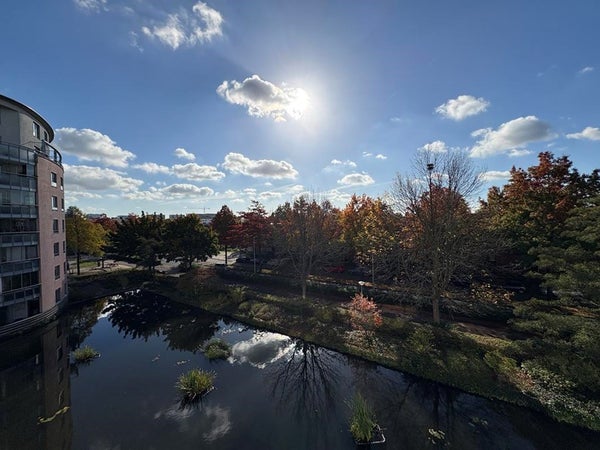 Balkon op het zuiden biedt een heerlijk zonnige plek met uitzicht op de vijver aan de voorkant!