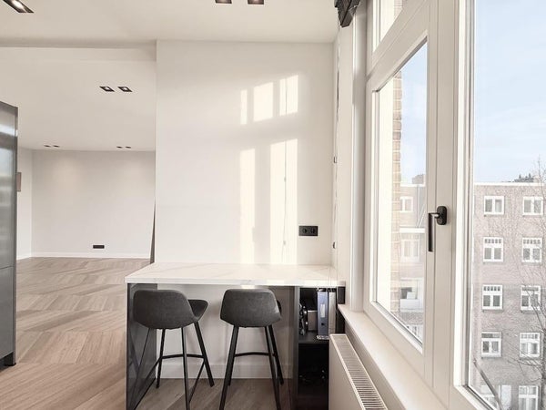 twee-slaapkamer appartement van 85 m², met een op het zuiden gerichte balkon en een geweldige dakterras van 40 m². Het dakterras wordt gedeeld met de huurder op de andere verdieping en is uitgerust met tuinmeubilair. Het appartement beschikt over twee slaapkamers, één badkamer, een apart toilet en een woonkamer met open keuken. Wonen aan de Lomanstraat betekent elke dag wakker worden op een van de mooiste, bomen omzoomde avenuen van Amsterdam. Om de hoek vind je charmante cafés, speciaalzaken, en het Vondelpark dat op korte loopafstand ligt, perfect voor ochtendjogging of luie zondags picknicks. Wonen aan de Lomanstraat betekent genieten van het beste van Amsterdam Oud-Zuid: klassieke architectuur, groene sereniteit, en een onmiskenbaar gevoel van gemeenschap dat je vanaf de eerste dag thuis laat voelen. Huisdelen is toegestaan voor werkende professionals. Studenten zijn niet toegestaan. Huisdieren zijn niet toegestaan. Het bruto jaarinkomen vereiste voor dit appartement is 124 K.